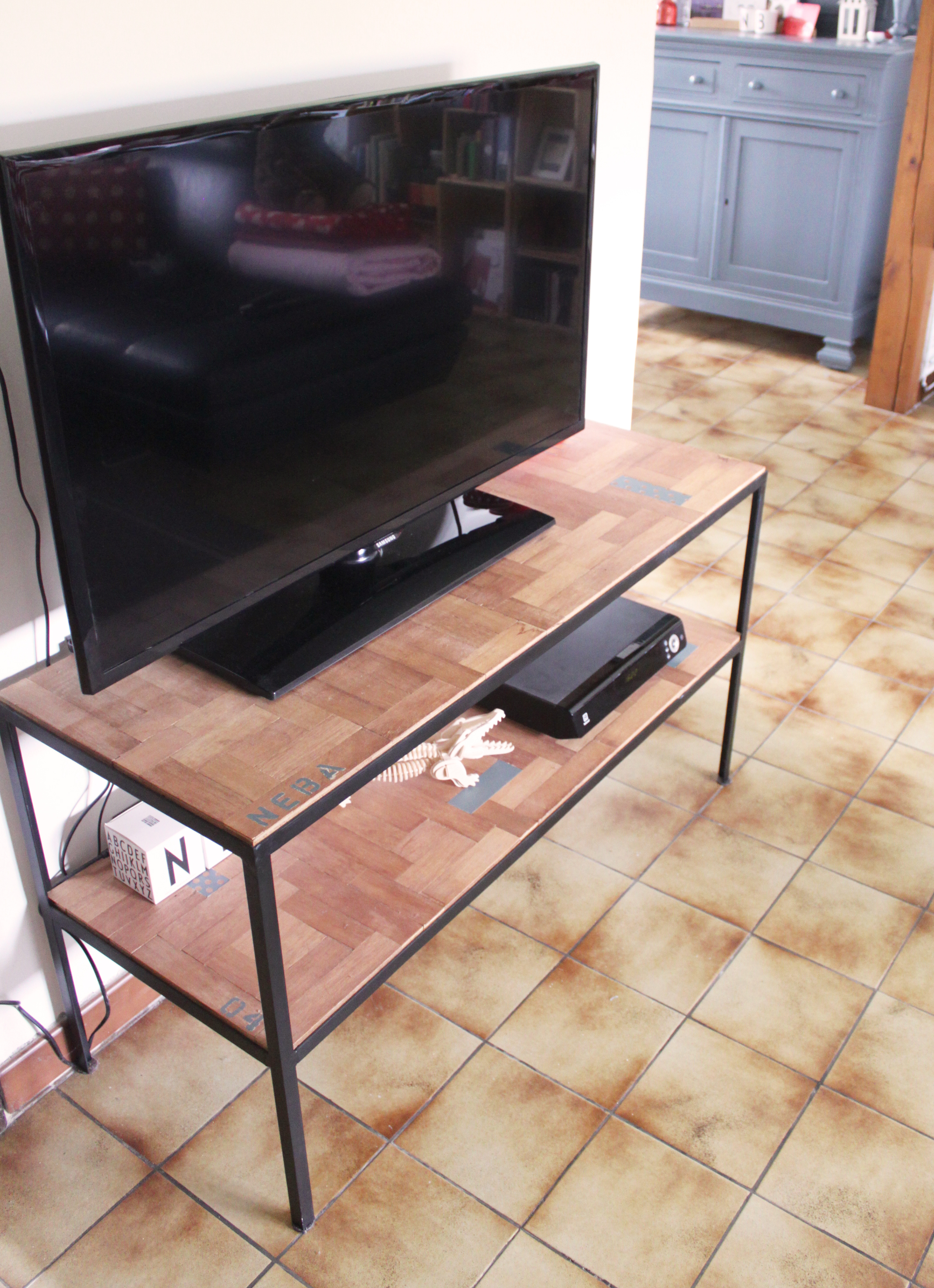 3 + 4. Our handmade little TV stand. Husband made the frame in steel + spray pained it black. NeMoo made the shelves from the leftover wood from her Bachelor project interior design. It was quiet a puzzle. I also painted some patterns on them.