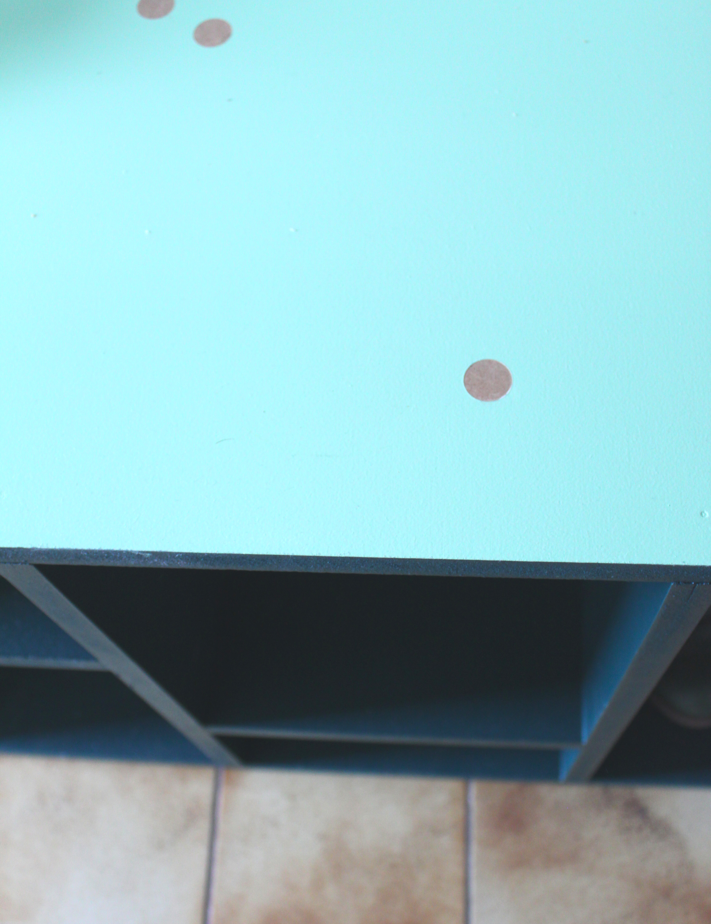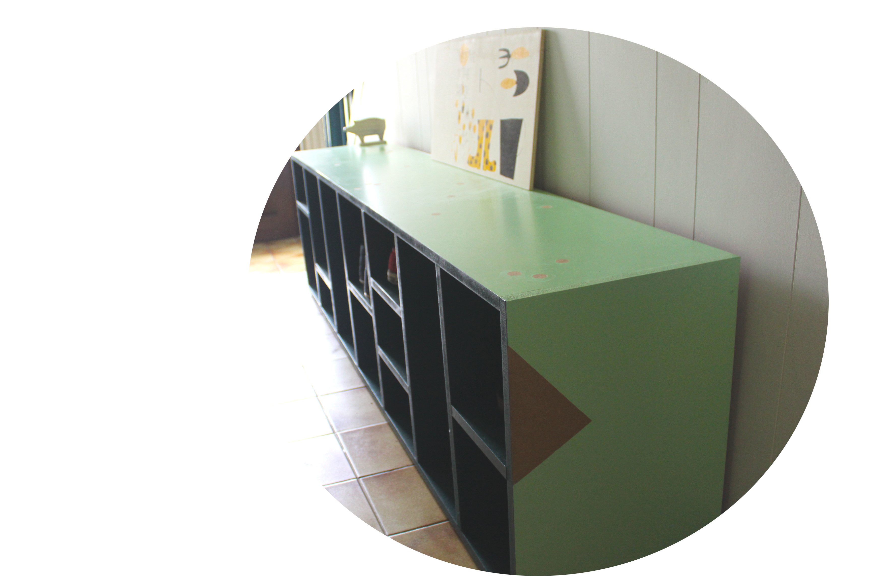 We made it out of MDF, and painted it afterwards (in a Minty green and turquoise on the inside).